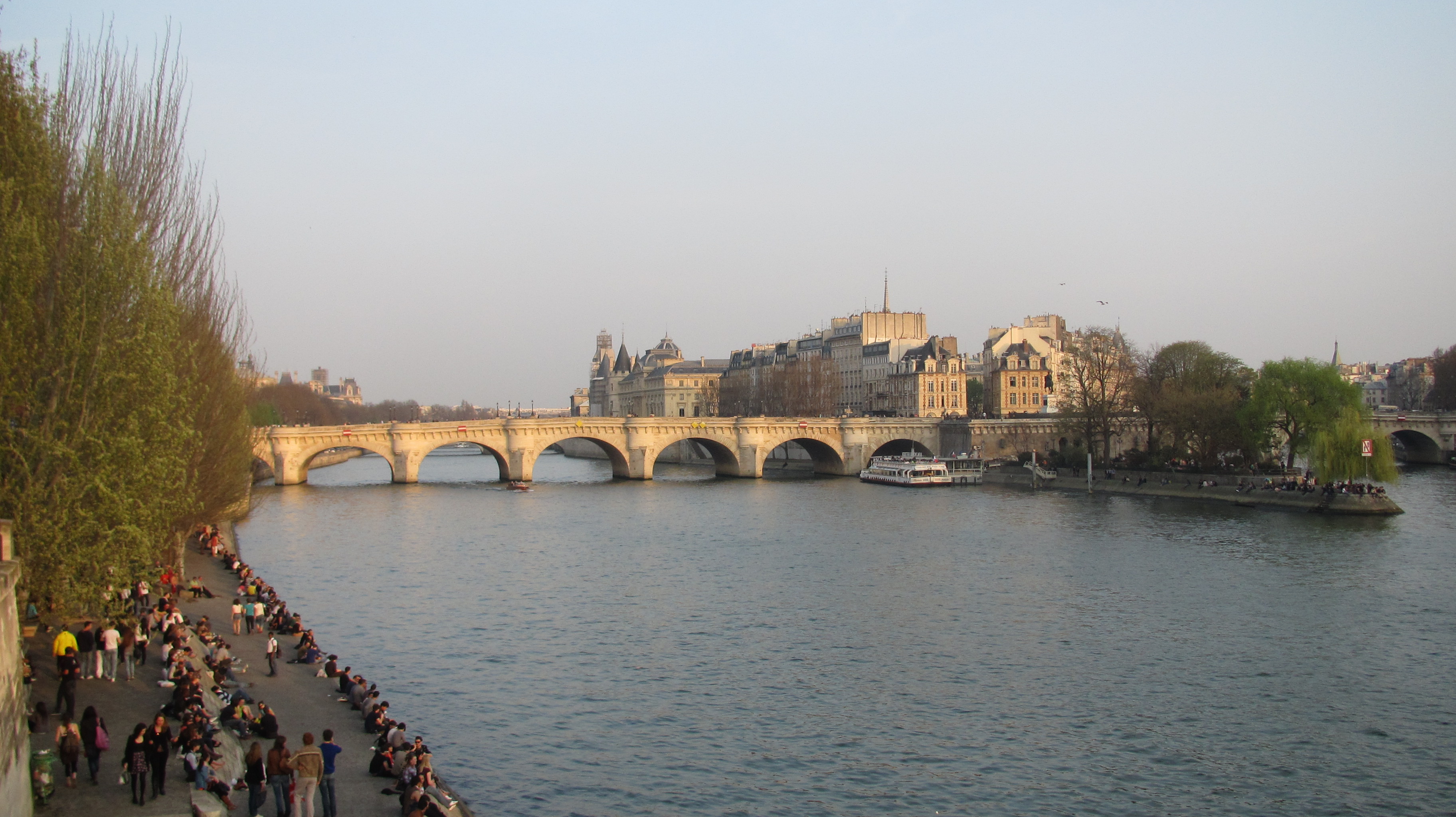 Then we went down to the bottom and we had some lunch sitting on the wharf next to the River Seine.